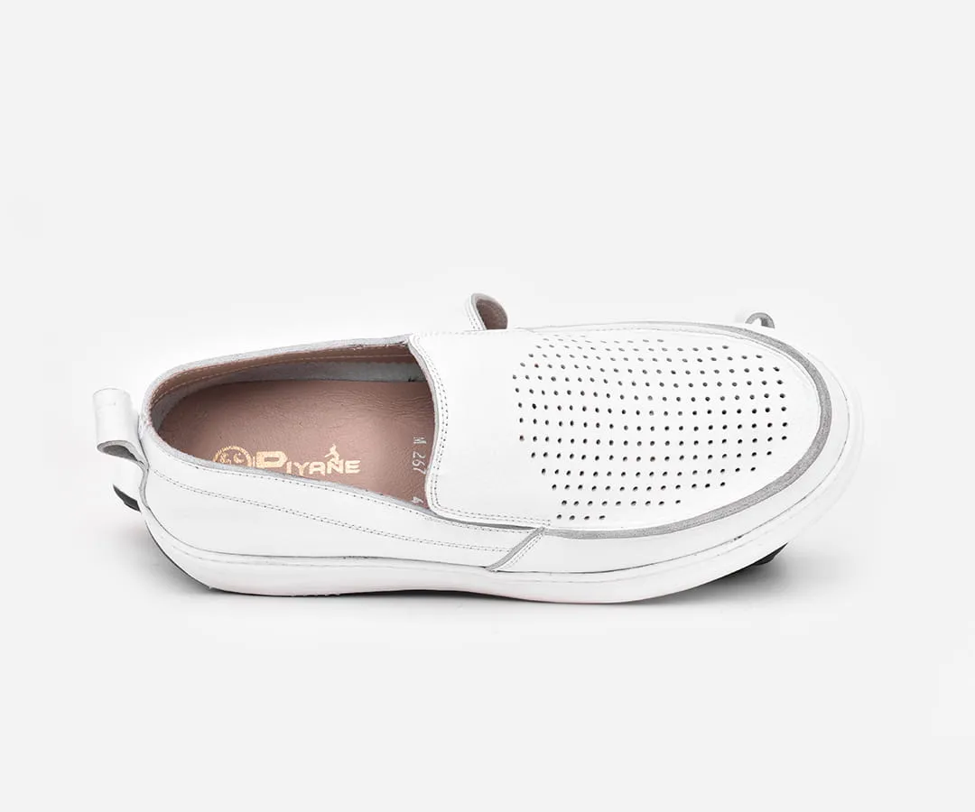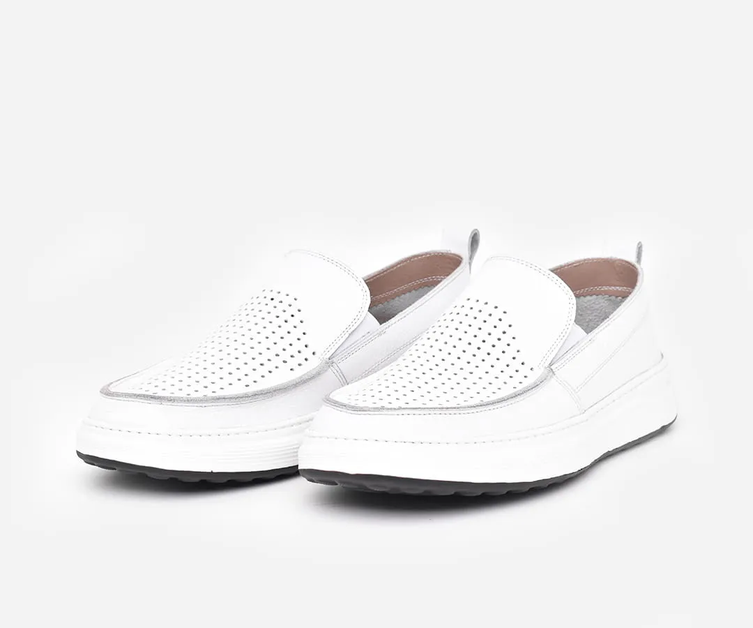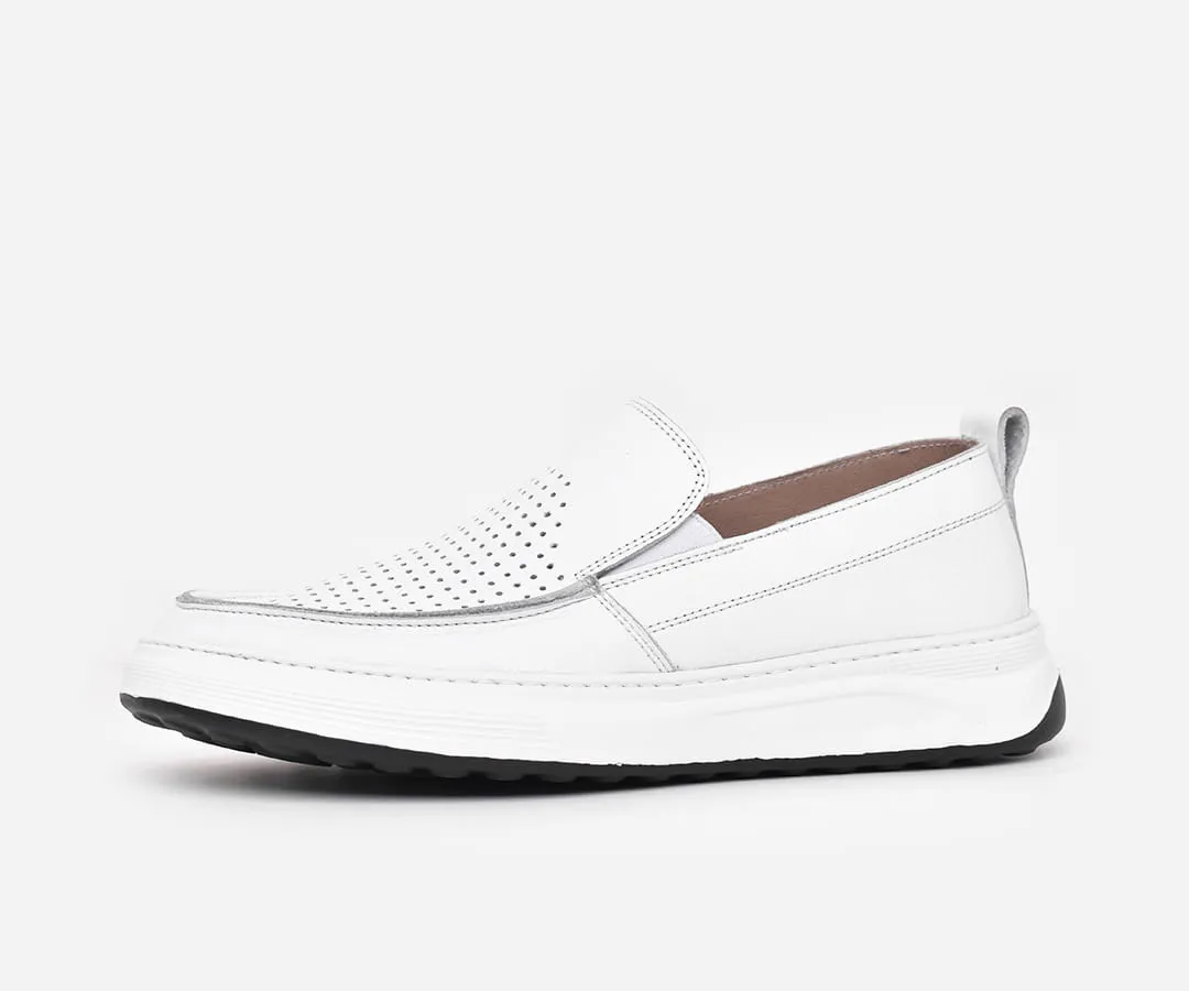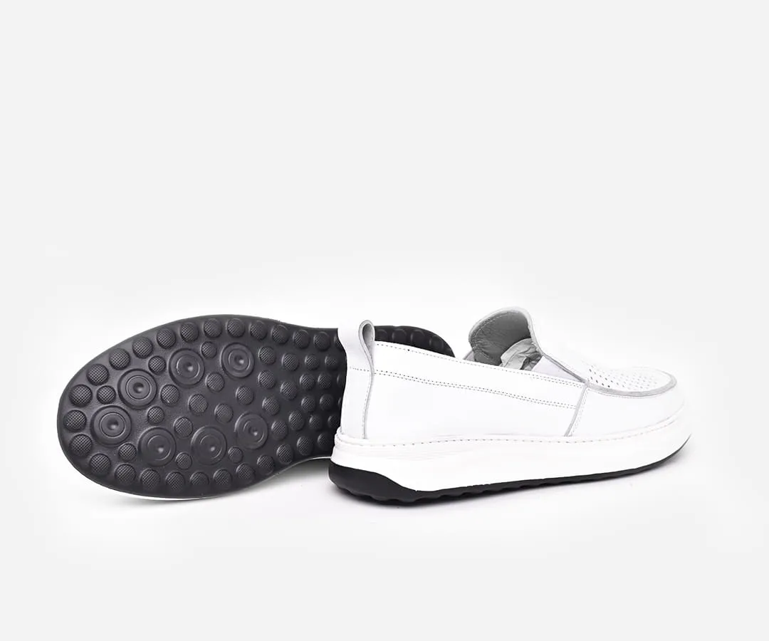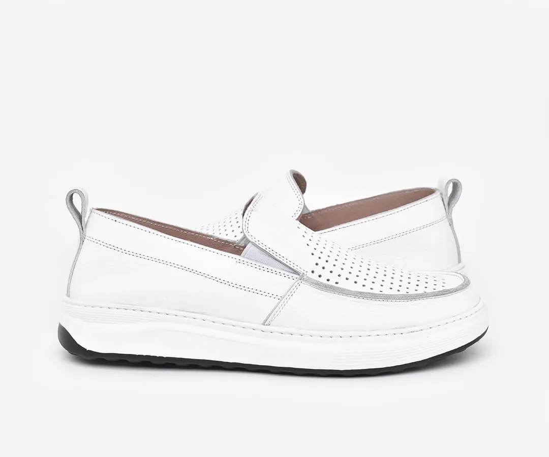 Chaussure médicale homme en cuir véritable blanc – mocassin