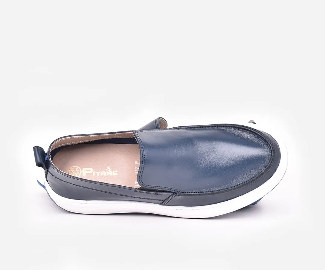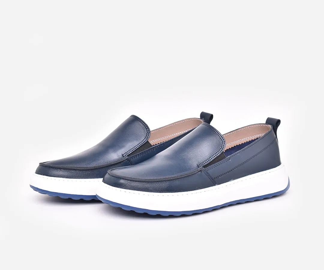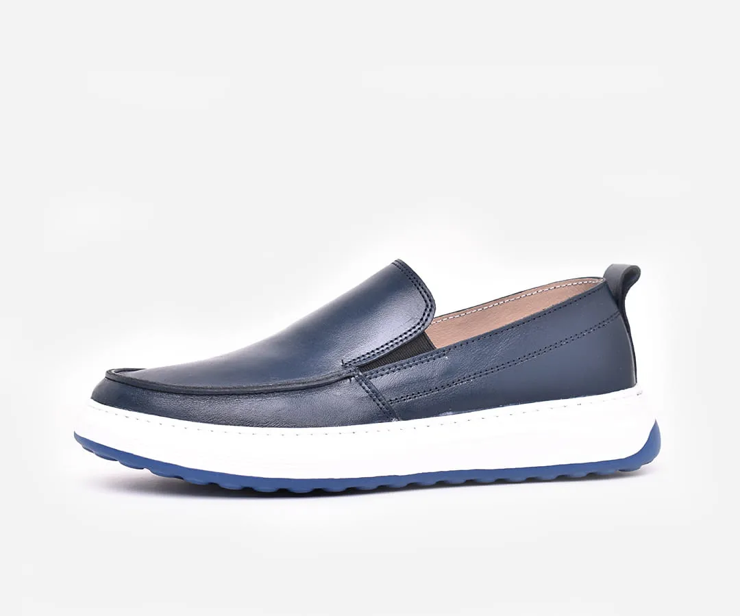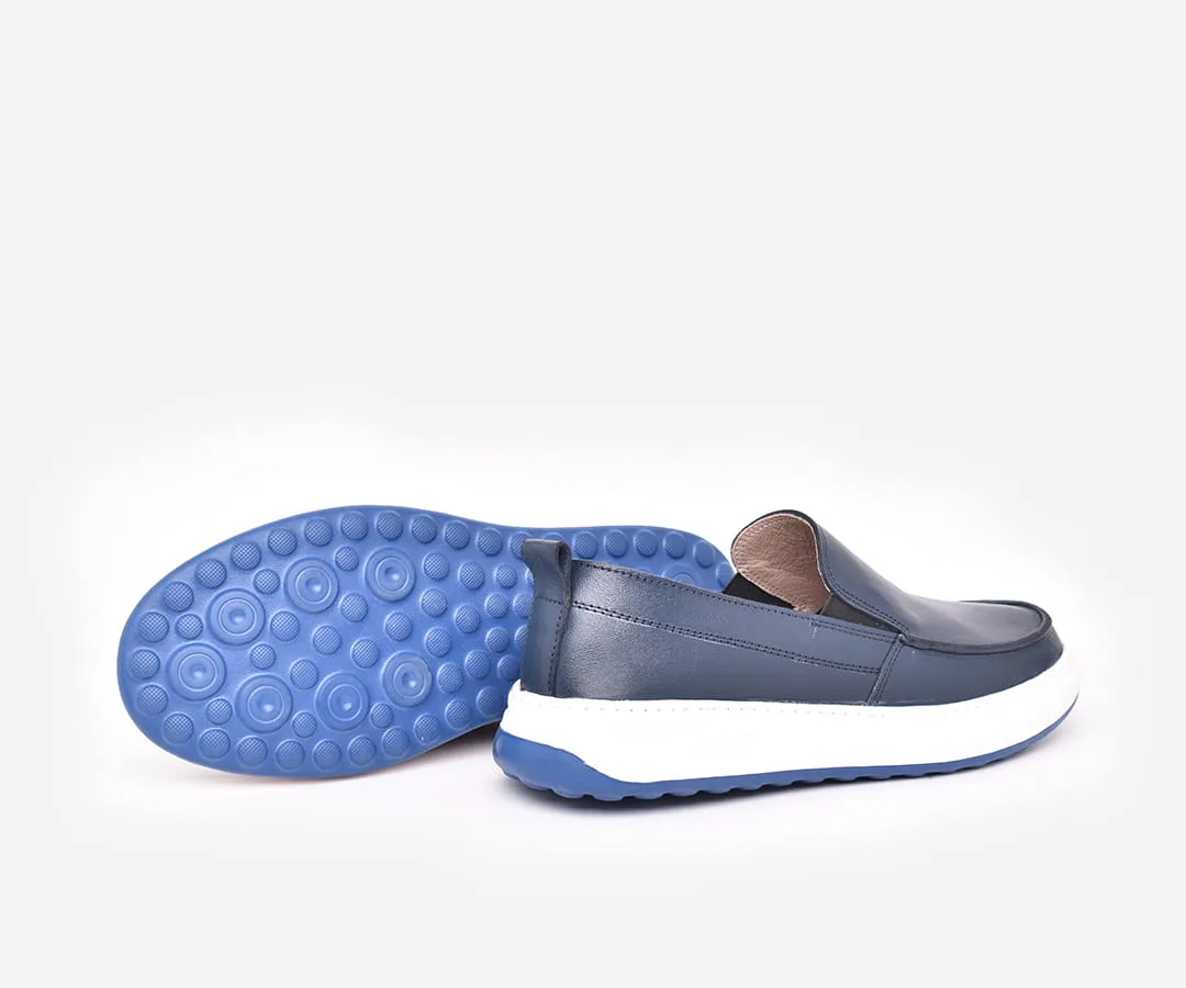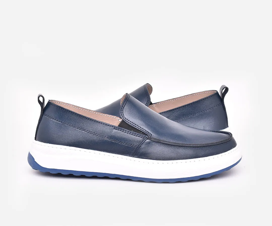 Chaussure médicale homme en cuir véritable bleu – mocassin