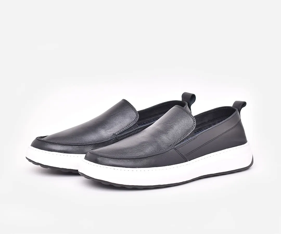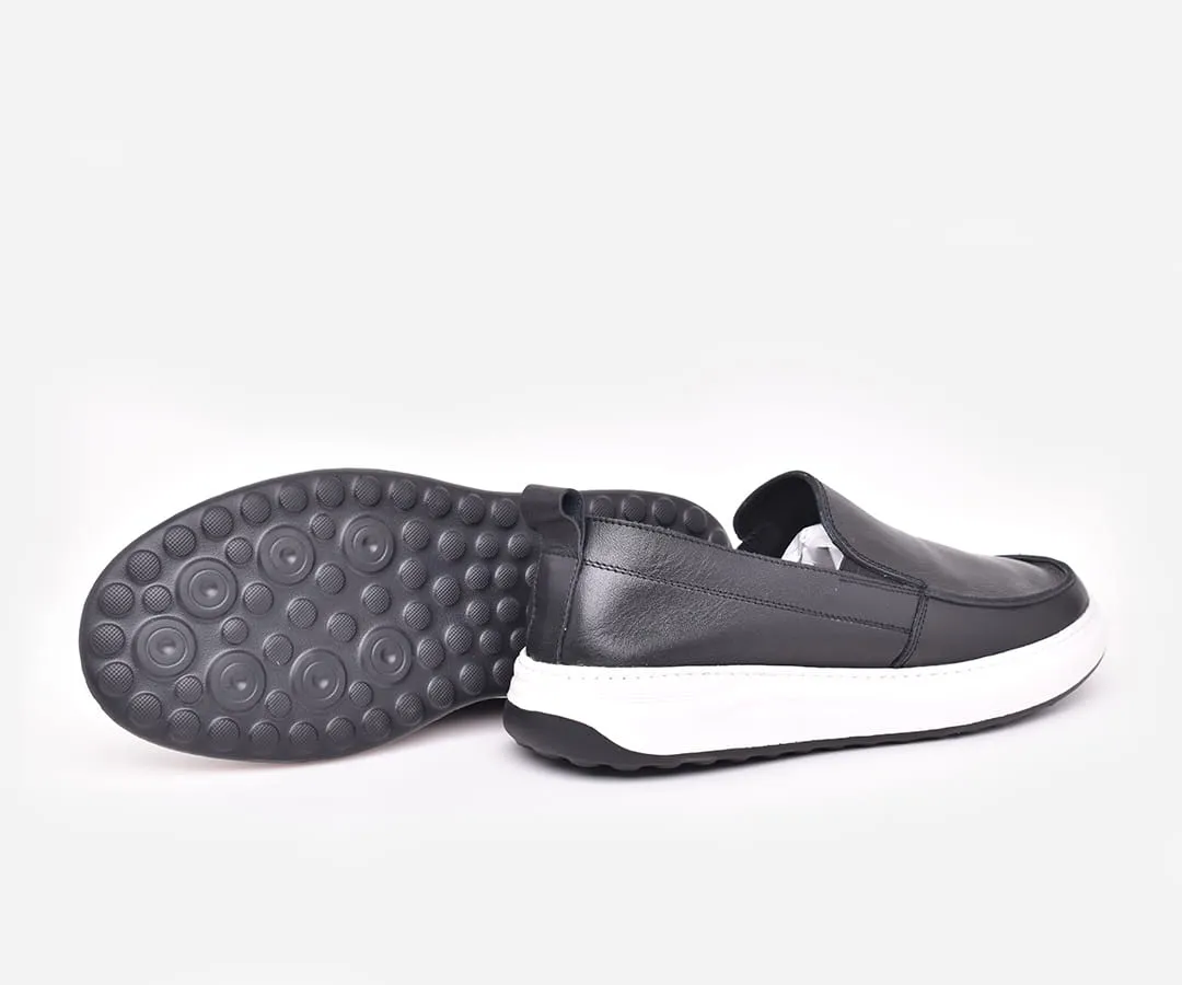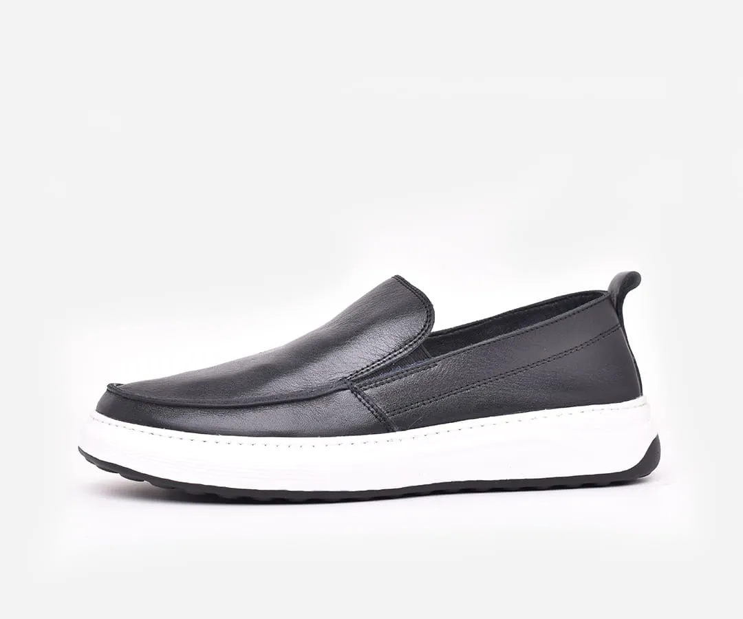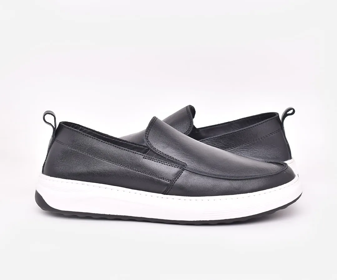 Chaussure médicale homme en cuir véritable noir – mocassin