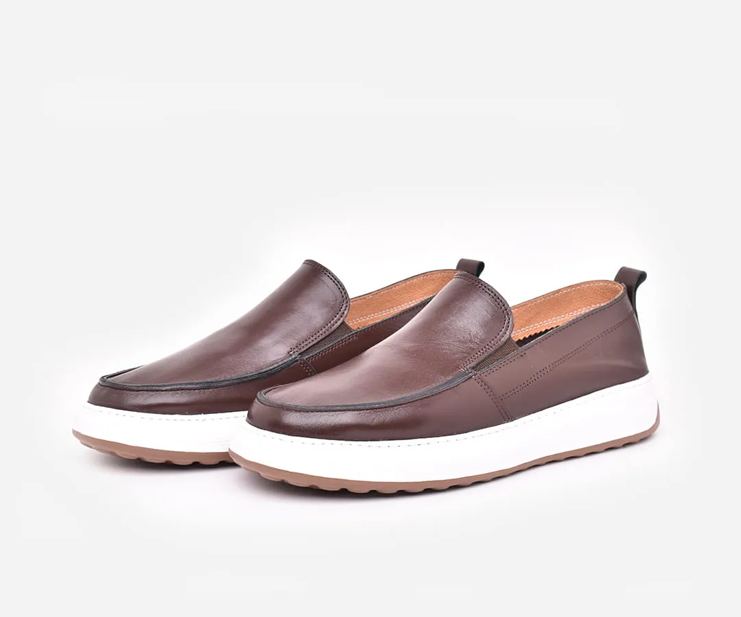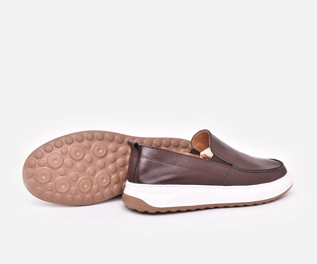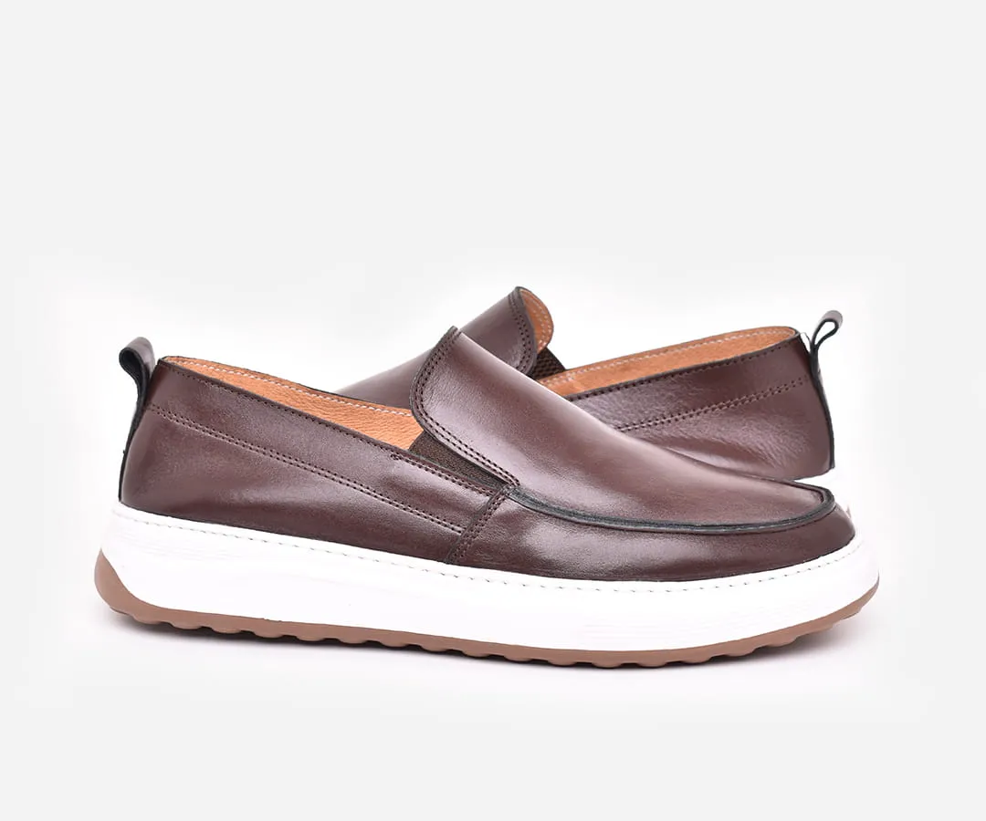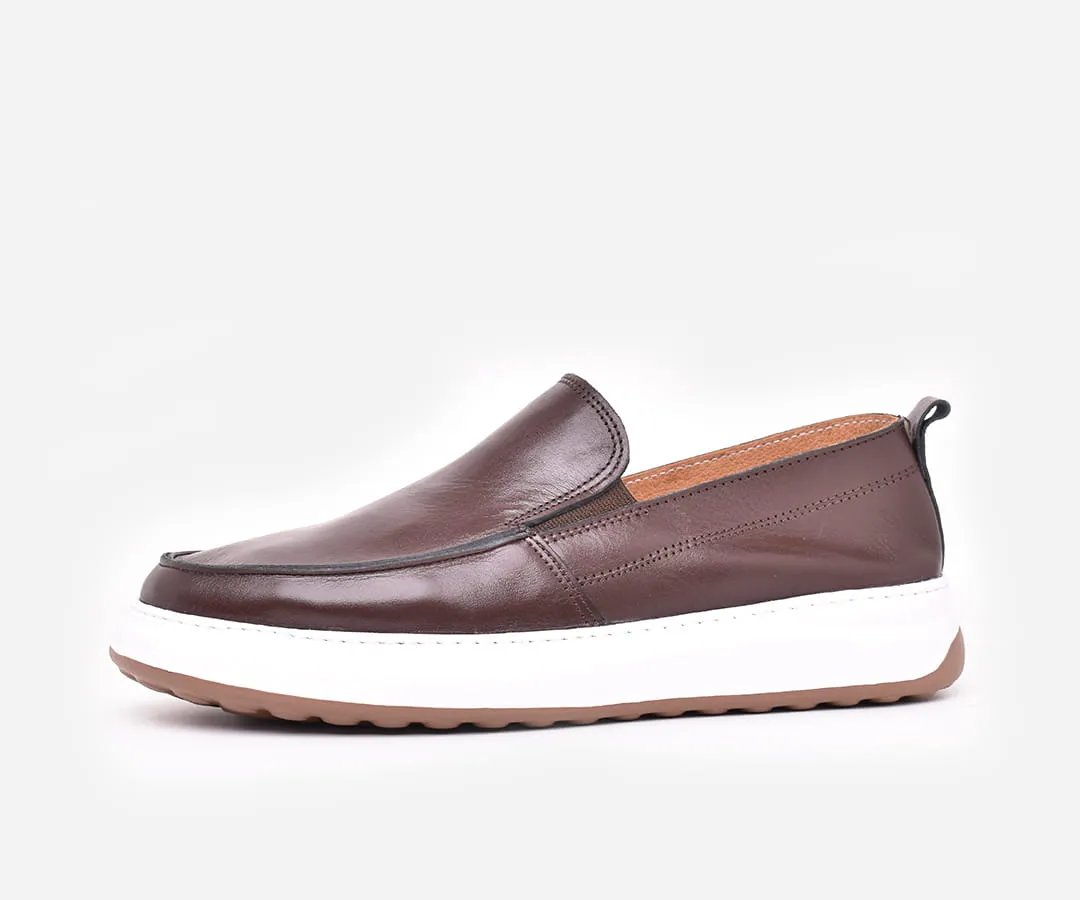 Chaussure médicale homme en cuir véritable marron – mocassin